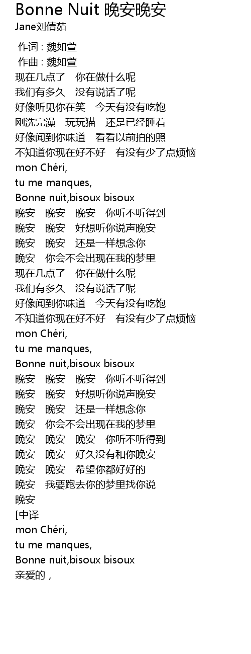 | [01:00.327] | Bonne nuit,bisoux bisoux |