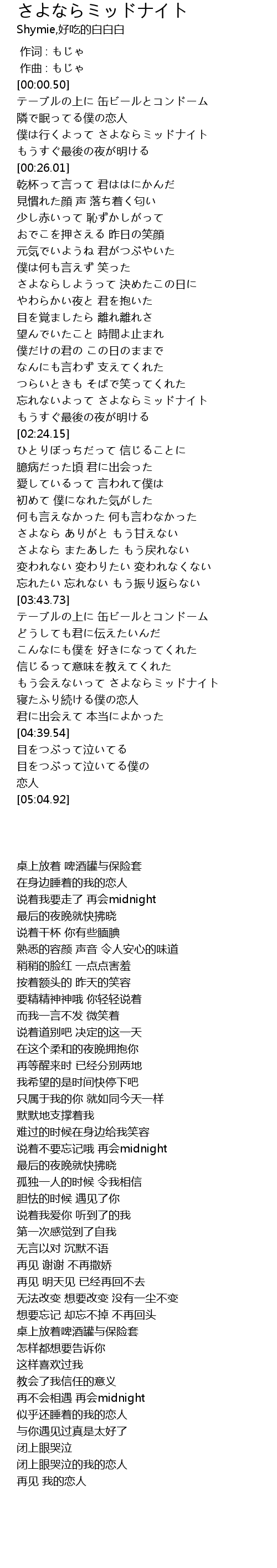| [04:19.83] | もう会えないって さよならミッドナイト |