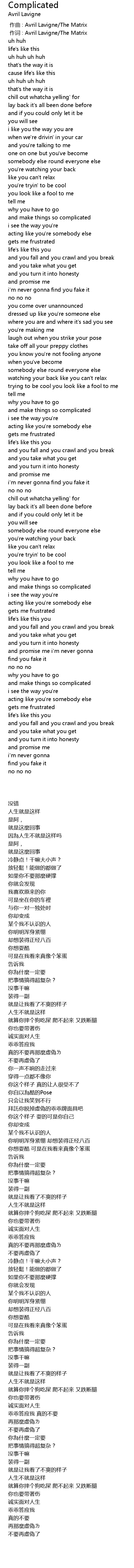 | [00:01.00] | 作词 : Avril Lavigne/The Matrix |
