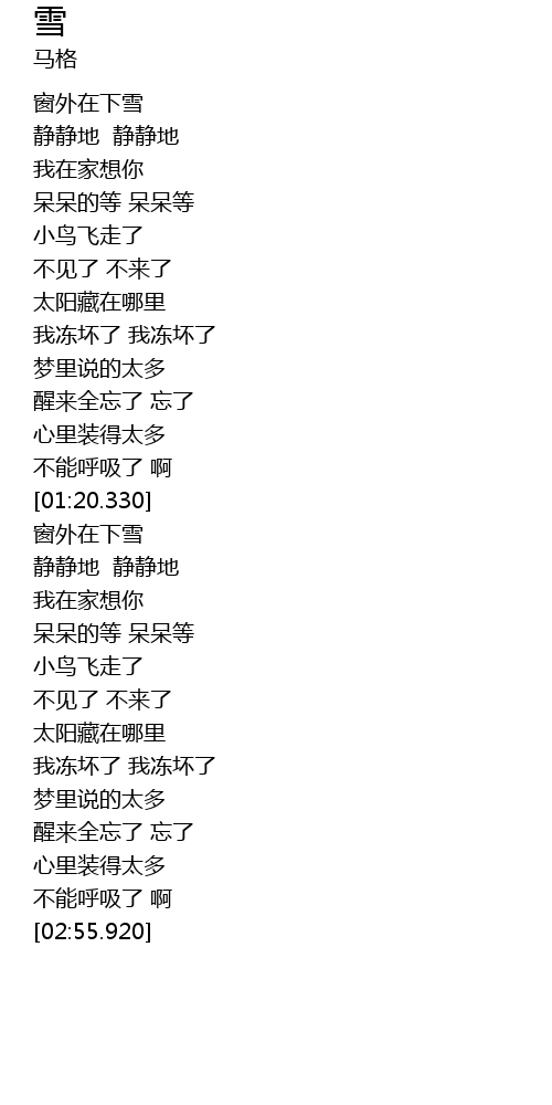 | [01:38.930] | 窗外在下雪 |