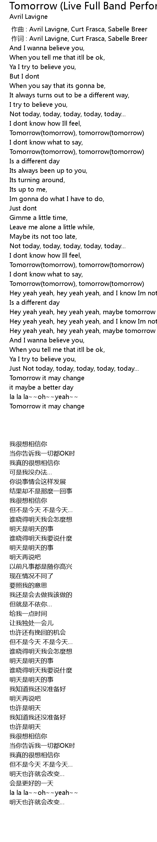 | [00:01.00] | 作词 : Avril Lavigne, Curt Frasca, Sabelle Breer |