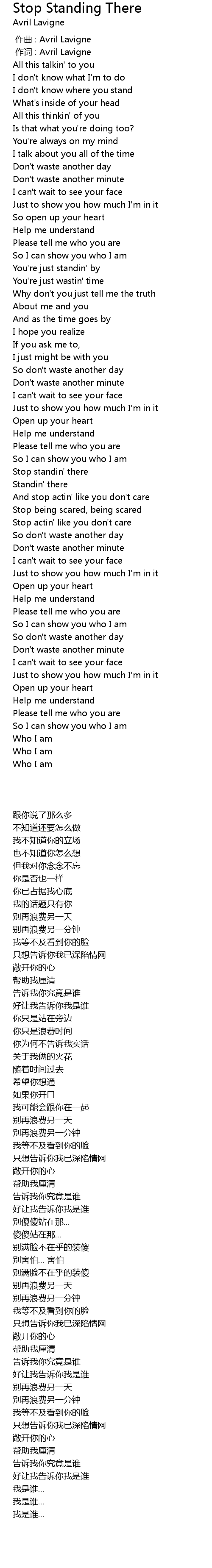 | [00:00.933] | zuo ci : Avril Lavigne |