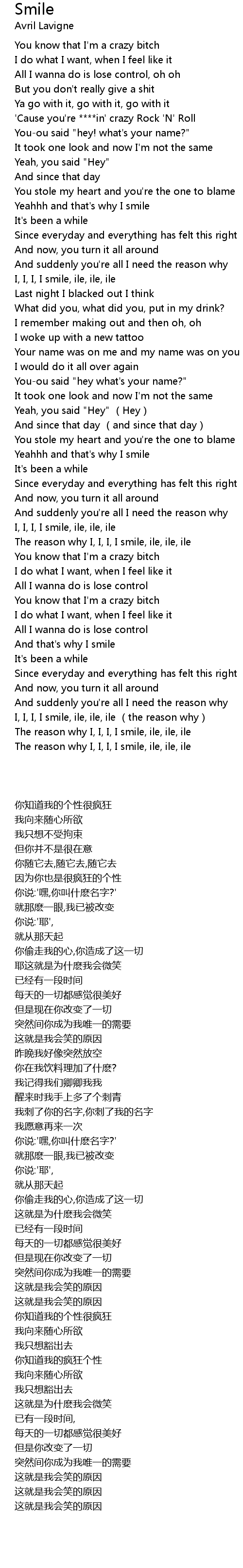 | [02:58.780] | I, I, I, I smile, ile, ile, ile (the reason why) |