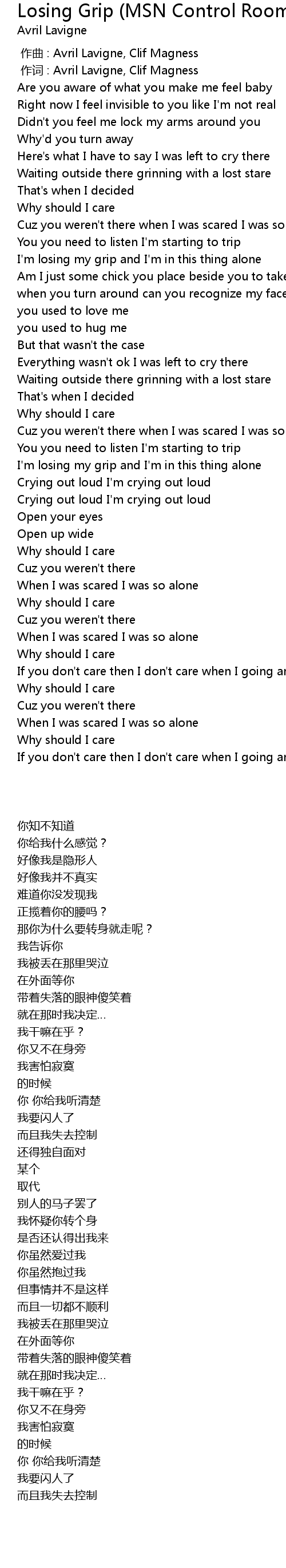 | [00:00.00] | zuo qu : Avril Lavigne, Clif Magness |
