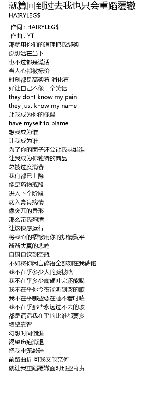 | Song | 就算回到过去我也只会重蹈覆辙 |