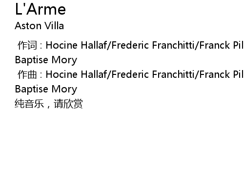 | [00:00.000] | 作词 : Hocine Hallaf/Frederic Franchitti/Franck Pilant/Jean Baptise Mory |