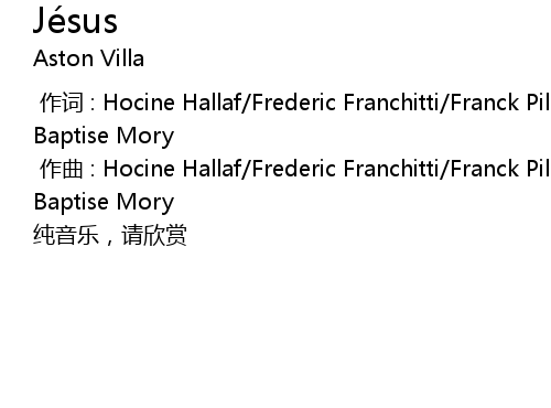 | [00:00.000] | 作词 : Hocine Hallaf/Frederic Franchitti/Franck Pilant/Jean Baptise Mory |