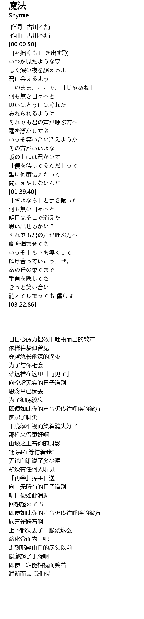 作词 : 古川本舗 |