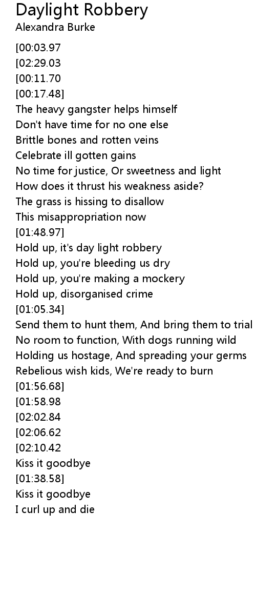 | [00:50.81] | Hold up, it's day light robbery |