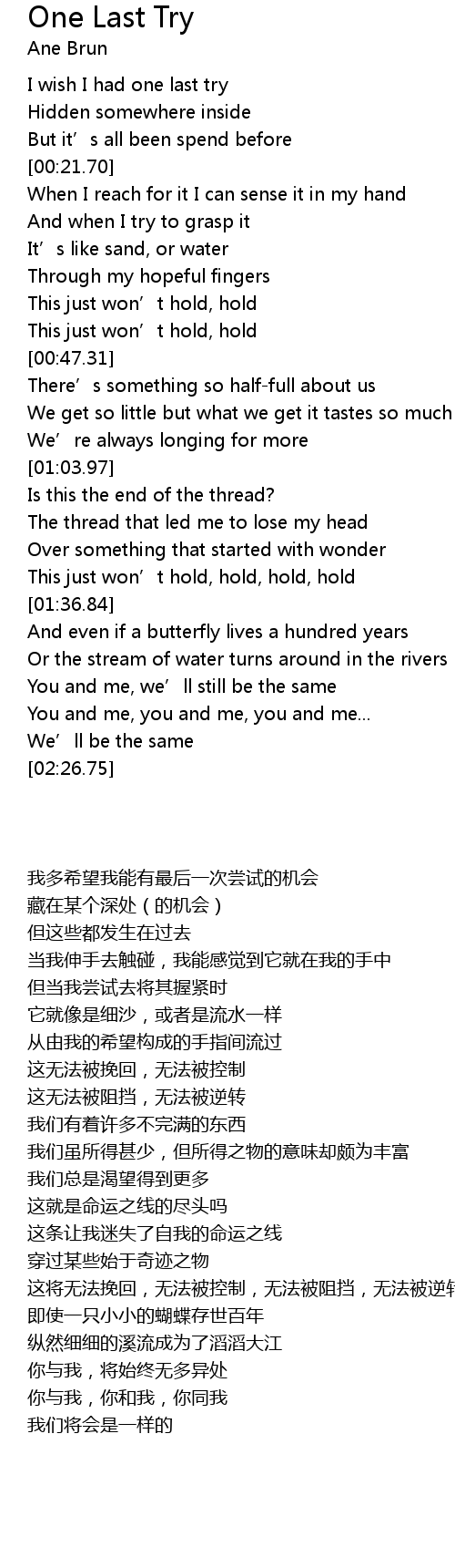 | [01:19.32] | This just won' t hold, hold, hold, hold |
