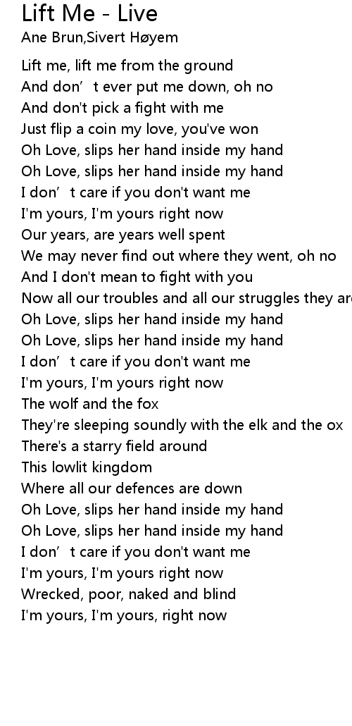 | Lift me, lift me from the ground | |