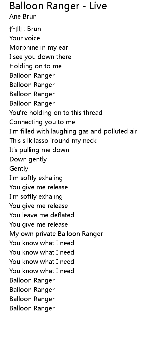 | Song | Balloon Ranger - Live |