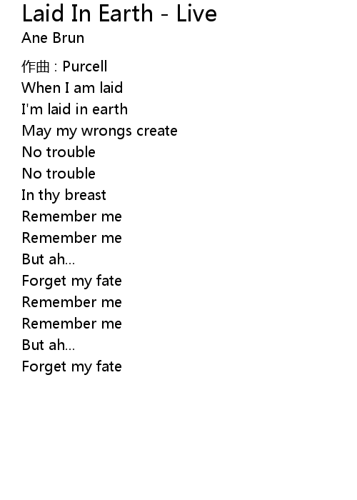 Laid In Earth - Live Lyrics