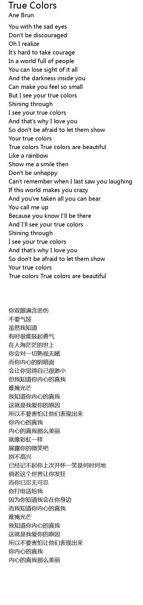 True Colors Lyrics