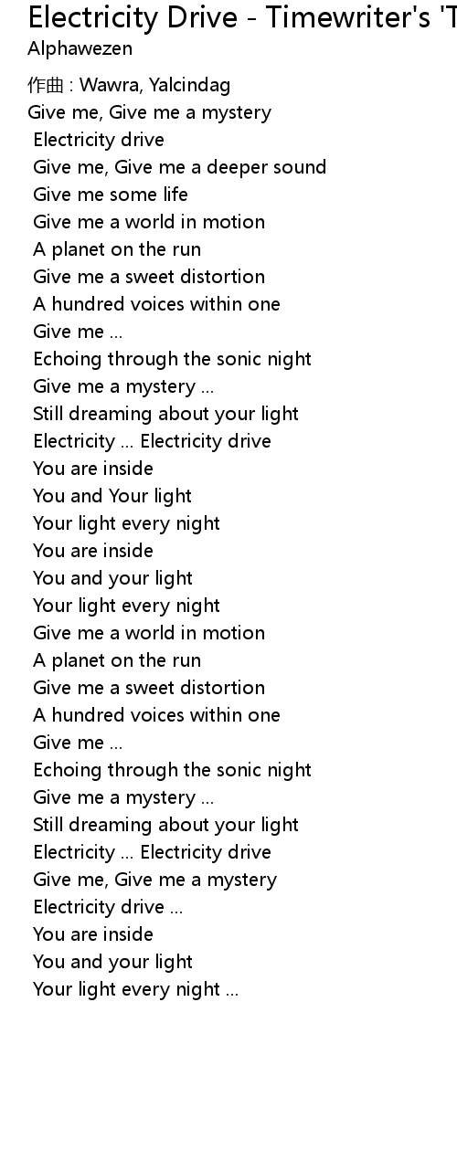 | Song | Electricity Drive - Timewriter's 'Timestyled Redrive' |