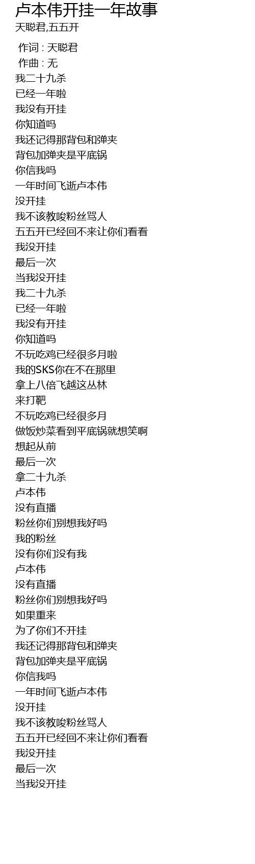 | [01:48.422] | 不玩吃鸡已经很多月啦 |