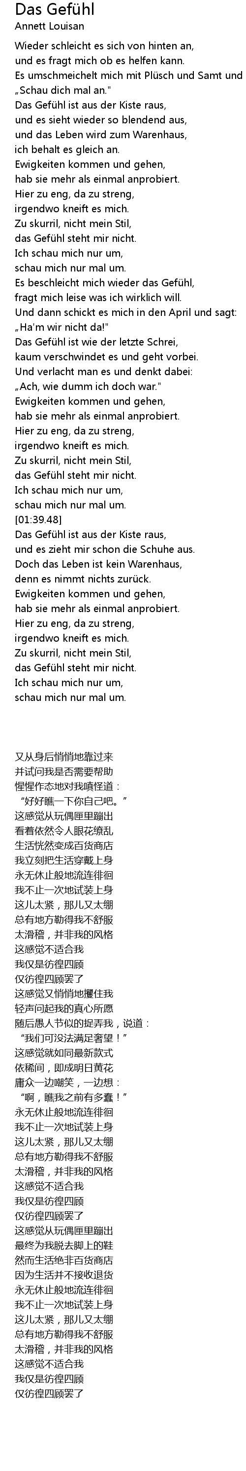 | [00:39.47] | das Gefühl steht mir nicht. |