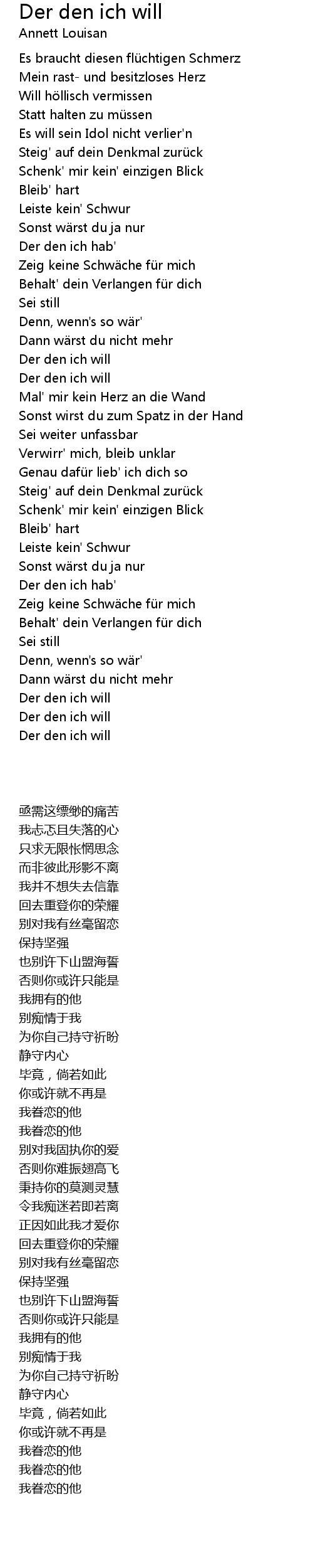| [02:13.730] | Behalt' dein Verlangen fü r dich |