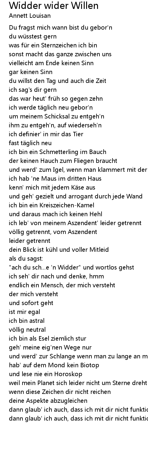 | " ach du sch... e ' n Widder" und wortlos gehst | |