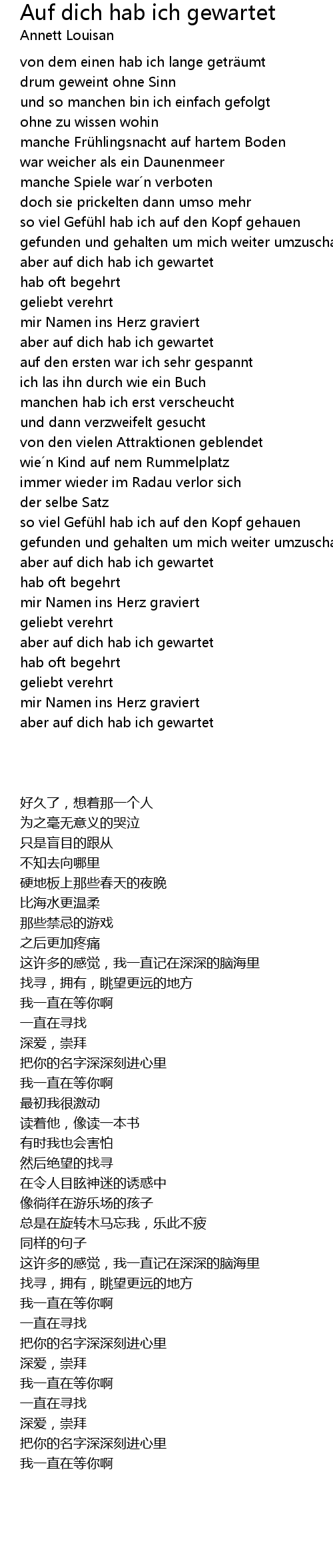 | [02:16.92] | aber auf dich hab ich gewartet |