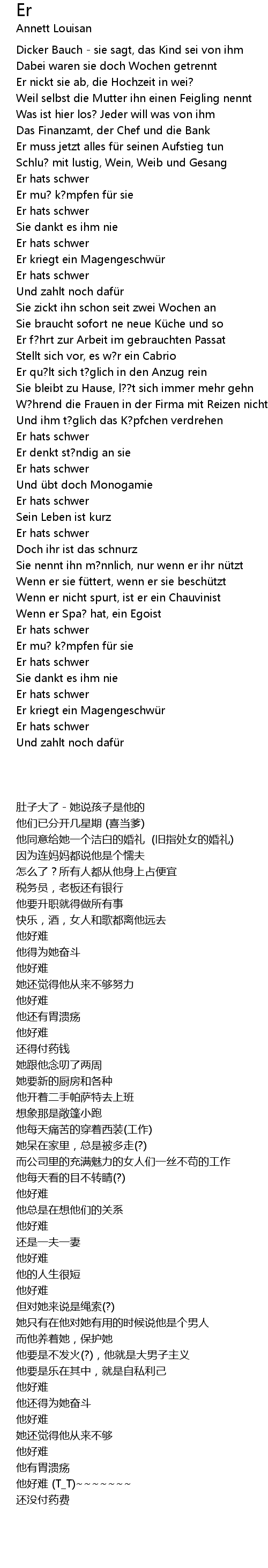 | [01:40.400] | Er denkt st?ndig an sie |