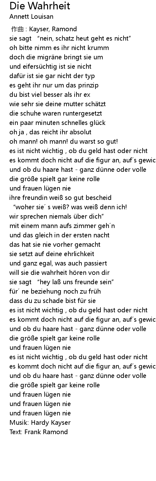 | [01:46.43] | will sie die wahrheit h ren von dir |