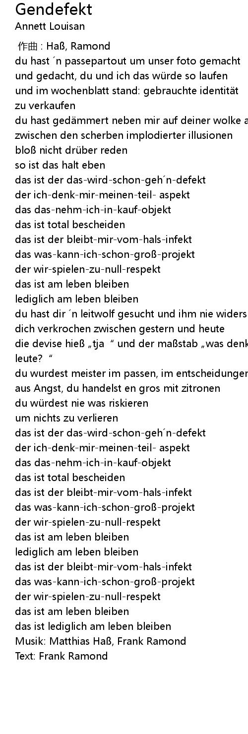 | Song | Gendefekt |