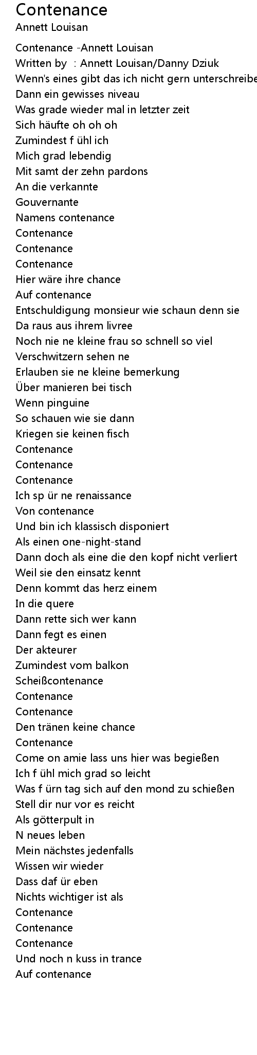 | [00:01.06] | Written by : Annett Louisan Danny Dziuk |