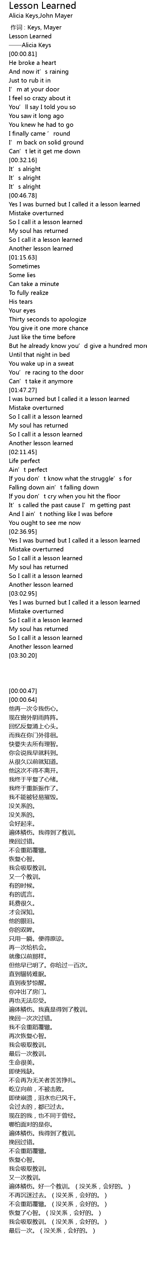 | [00:47.99] | Yes I was burned but I called it a lesson learned |