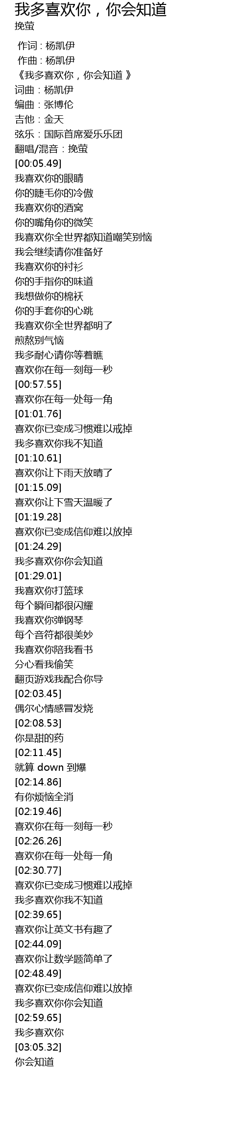| [02:35.83] | wo duo xi huan ni wo bu zhi dao |