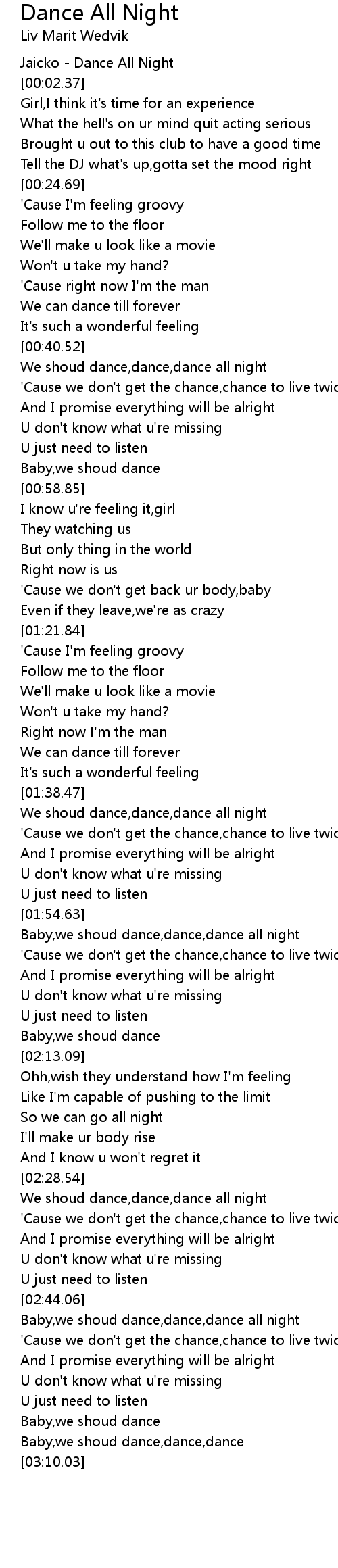 We shoud dance,dance,dance all night |