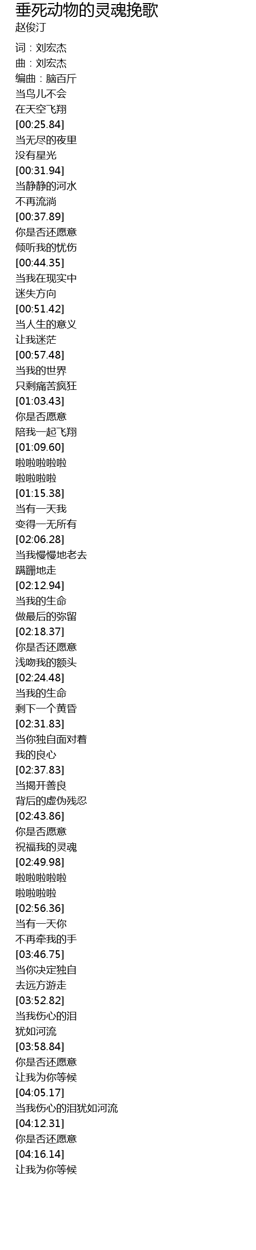 | [00:10.60] | 曲:刘宏杰 |