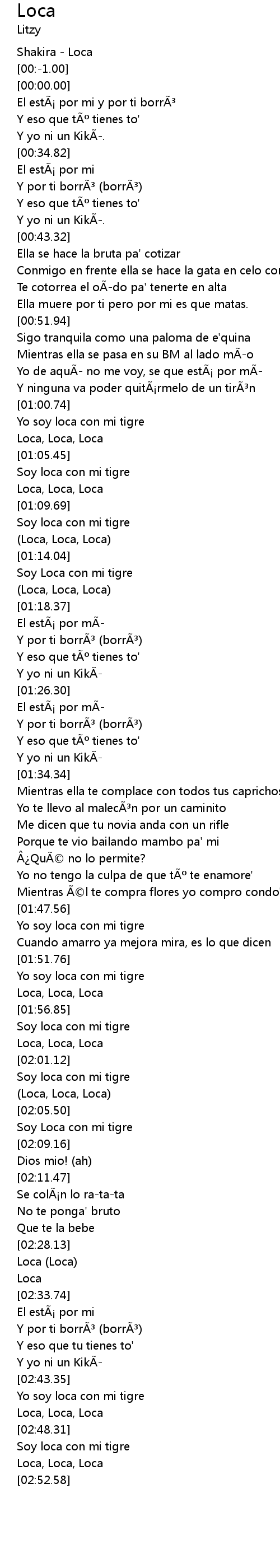 | [00:52.34] | Sigo tranquila como una paloma de e' quina |