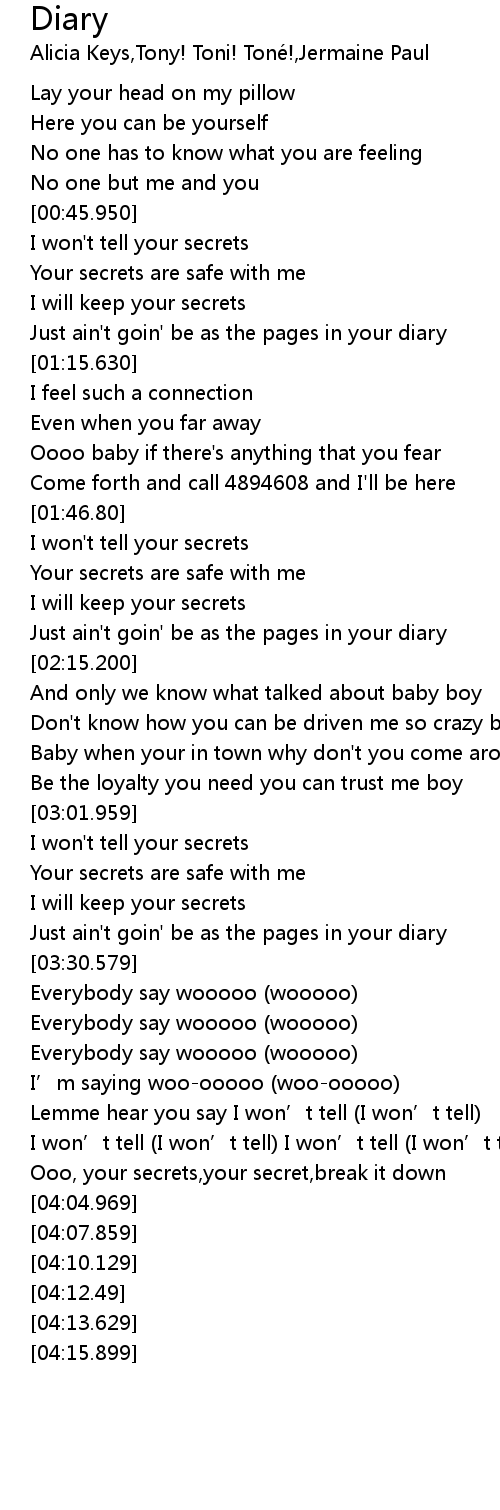 | [03:47.679] | Lemme hear you say I won’t tell (I won’t tell) |