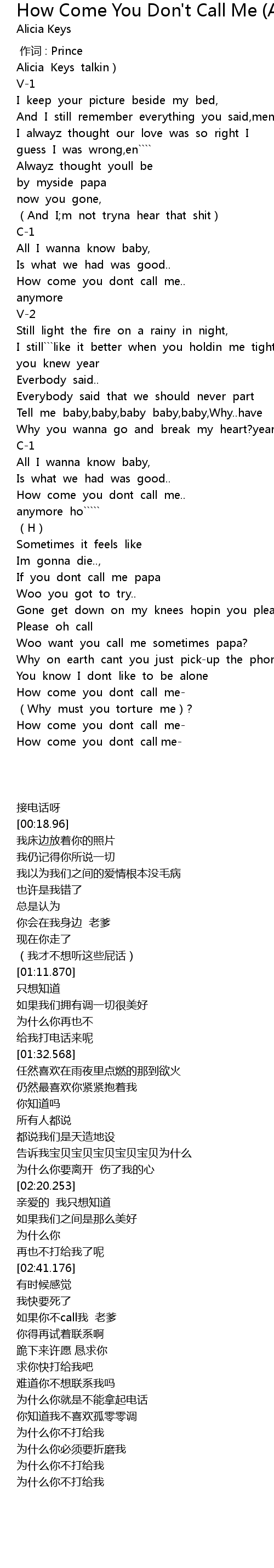 | [03:35.684] | How come you dont call me- |