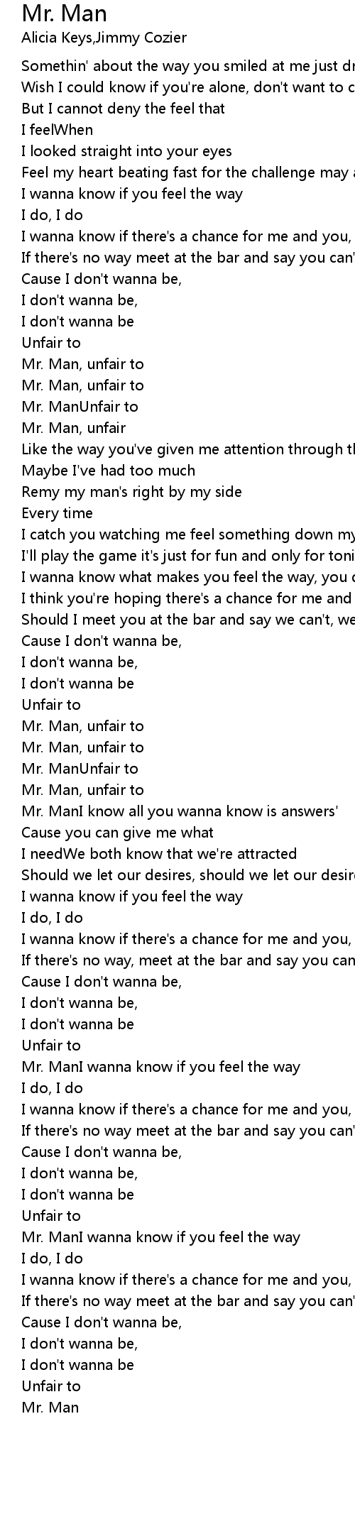 Mr. ManI wanna know if you feel the way |