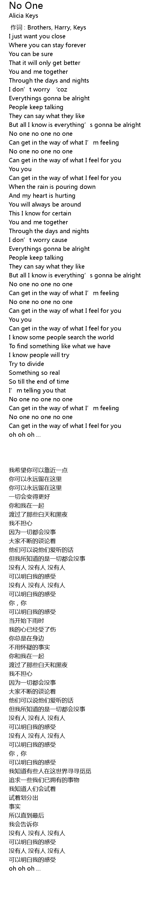 | Song | No One |