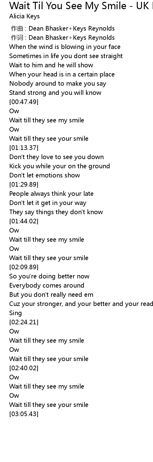 | Song | Wait Til You See My Smile - UK Radio Edit |