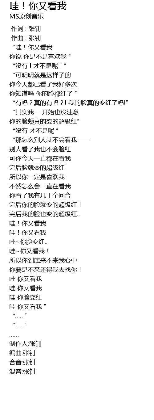| [02:55.01] | 哇 你又看我 ” |