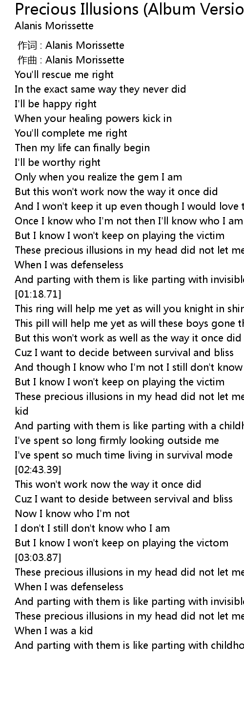 | [00:00.000] | 作词 : Alanis Morissette |