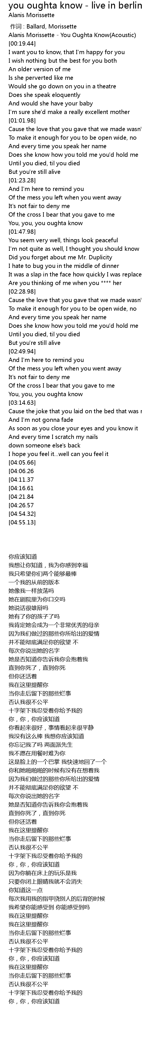 | [00:00.00] | Alanis Morissette You Oughta Know Acoustic |