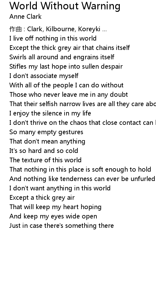 | Song | World Without Warning |