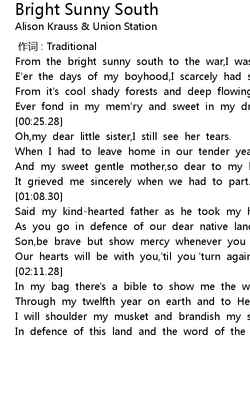 | [00:07.73] | From the bright sunny south to the war,I was sent, |