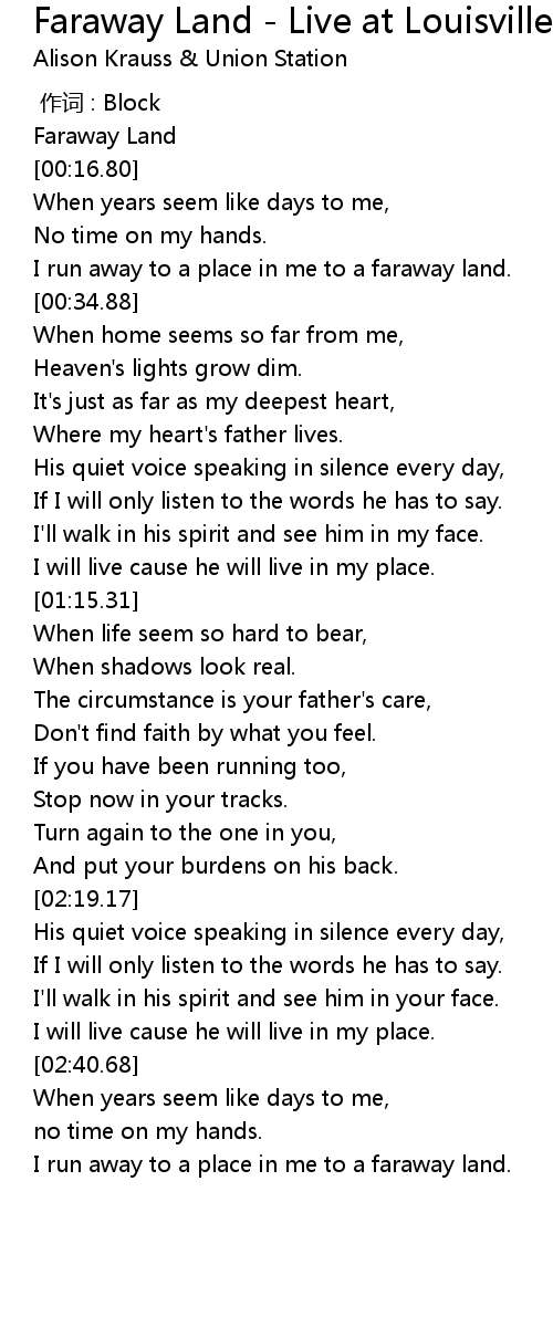 | [02:50.62] | I run away to a place in me to a faraway land. |