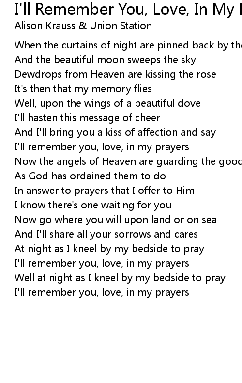 I'll remember you, love, in my prayers |