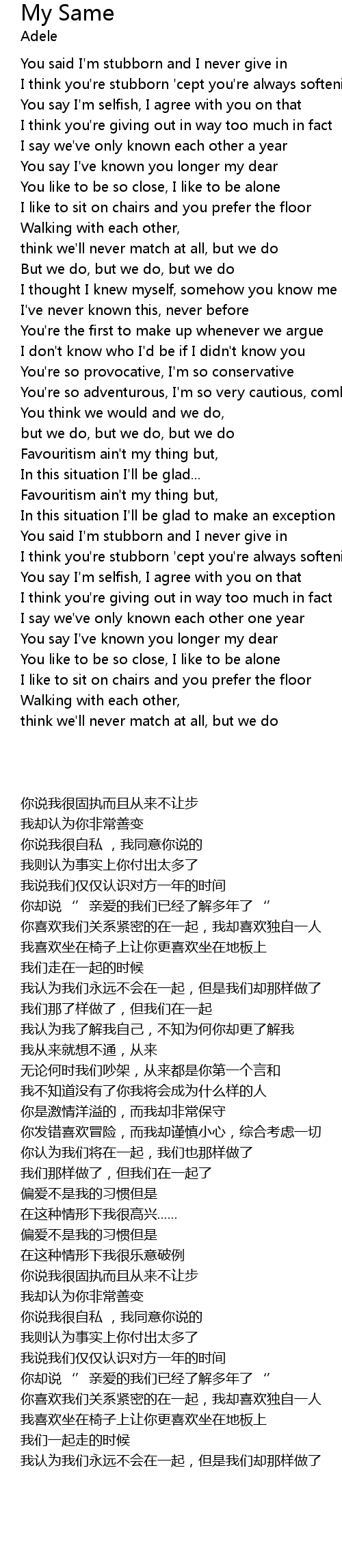| [00:38.800] | You like to be so close, I like to be alone |