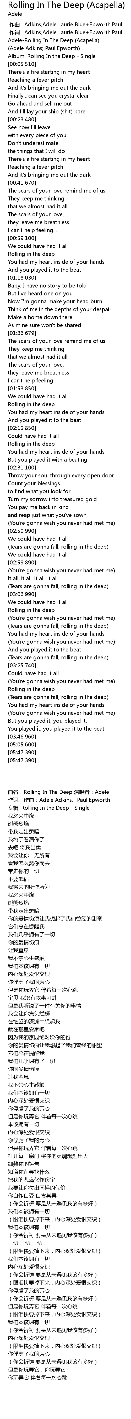 | [03:30.150] | Rolling in the deep |