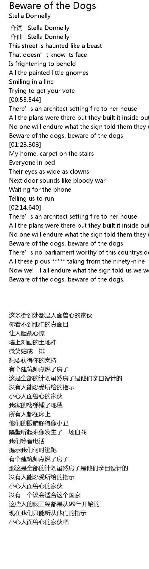 | [02:58.851] | Beware of the dogs, beware of the dogs. |