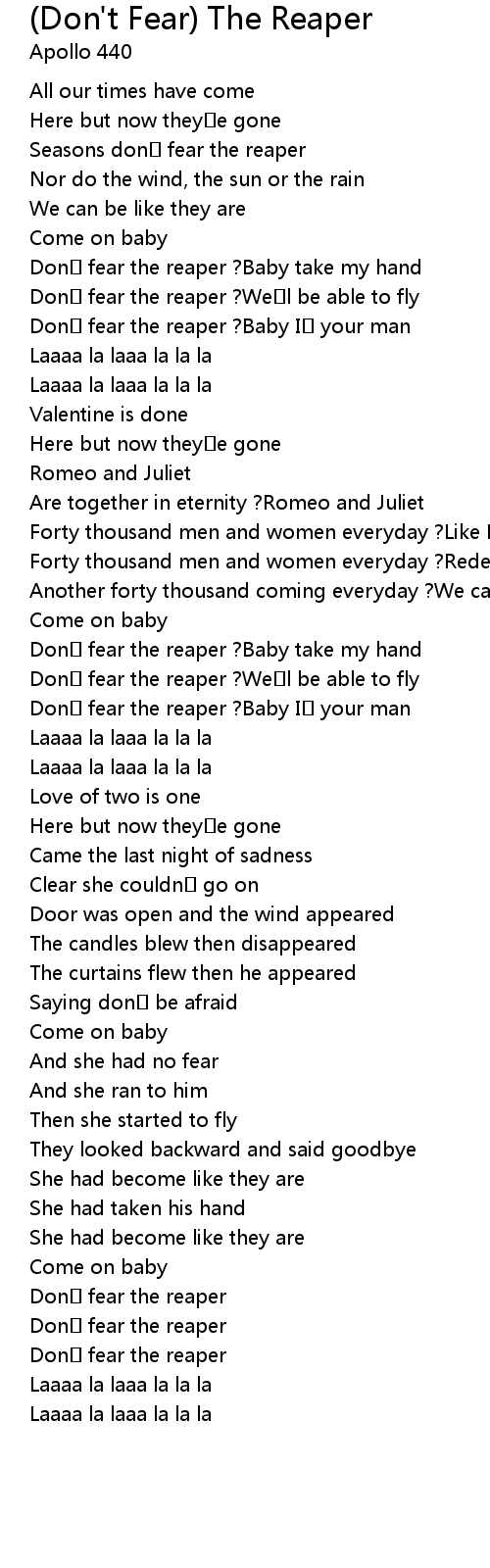 | Forty thousand men and women everyday ?Like Romeo and Juliet | |