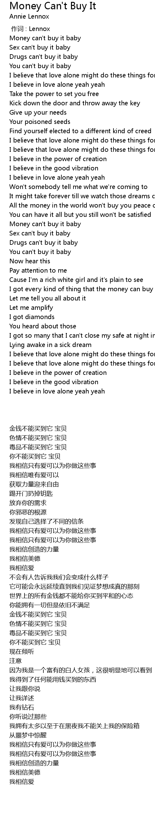 | [00:35.570] | Money can' t buy it baby |
